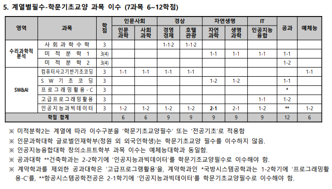 2025학년도 계열별필수 학문기초교양 과목안내
