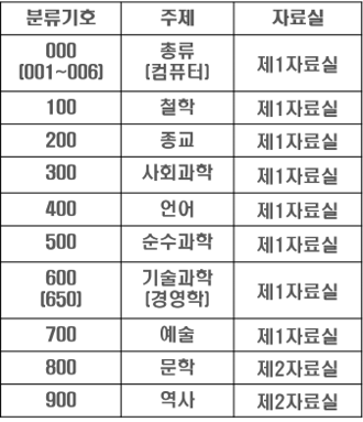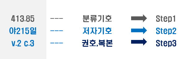 예시) 413 = 400번대 서가로 가서 413.85 찾기, 점(.) 뒤는 소수점 자릿수를 읽듯이 읽습니다.