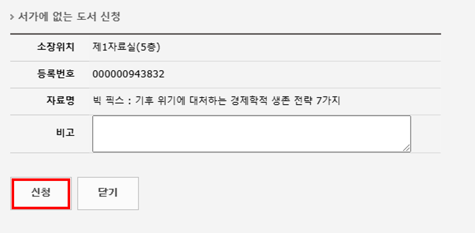 도서상태가 '대출가능'인 도서가 서가에 없는 경우 관리자에게 확인을 요청하는 서비스입니다.